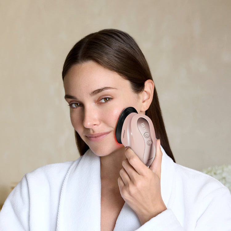 Gentle electrical currents mimic your body's natural bio-currents, stimulating facial muscles for visible lifting and firming.